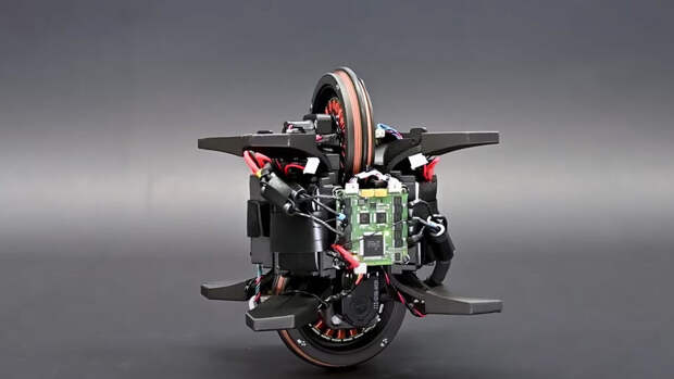Себастьяна Тримпе и его коллеги собрали и испытали Wheelbot. У этого робота есть лишь два колеса, расположенных на разных концах конструкции так, что одновременно они не касаются земли. Его конструкция полностью симметрична.
