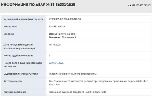 Актер Павел Прилучный подал 16 октября 2025 года апелляцию на решение суда о месте жительства его общего ребенка с бывшей женой Агатой. Эту информацию "Газета.Ru" обнаружила на сайте "Суды общей юрисдикции города Москвы".