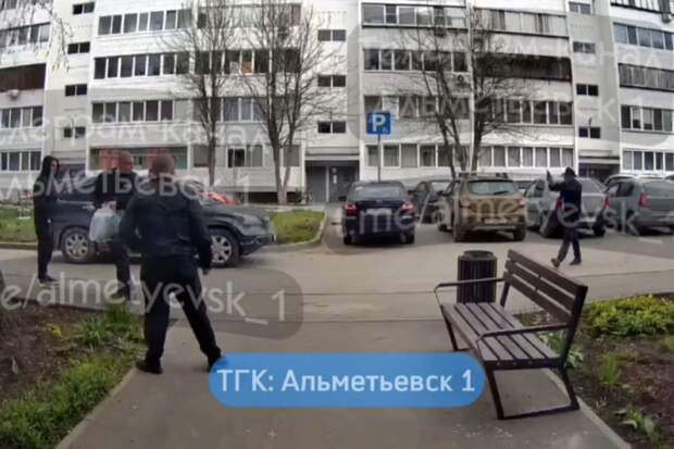 Инцидент произошел в Альметьевске, на улице Чернышевского. На кадрах с места заметно, как мужчина медленно идет по двору жилого дома с пистолетом прямо на компанию из двух мужчин, которые в какой-то момент бросились бежать в разные стороны.