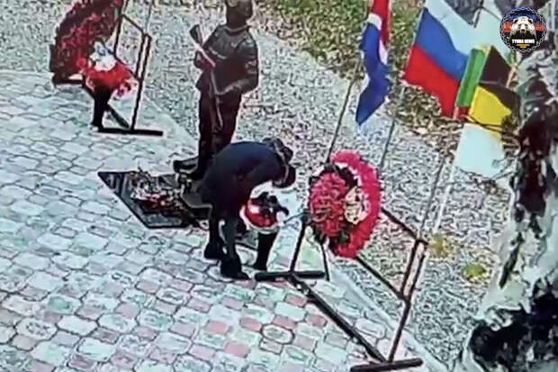 На кадрах с места инцидента заметно, как женщина пытается поджечь стоящие в вазе цветы. После этого она взяла несколько предметов около основания памятника и разбила их. Затем пинала элементы мемориала и светильники по краям от дороги, ведущей к нему.