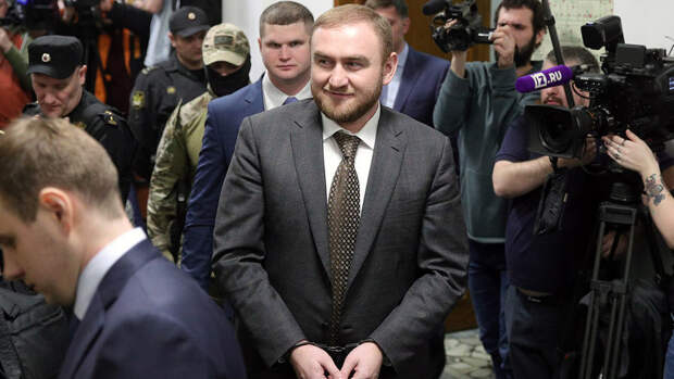Сенатор Рауф Арашуков доставлен в зал Басманного суда Москвы, где в отношении него будет избрана мера пресечения. 32-летнего сенатора подозревают в организации преступной группировки, убийств и нанесении тяжкого вреда здоровью. В зале суда политик появился в наручниках и с улыбкой на лице.