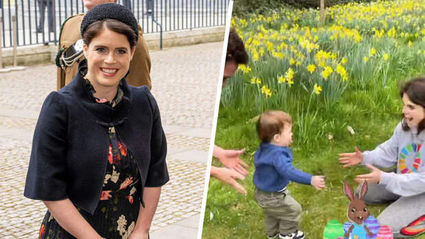 На кадрах Евгения разместила пасхальный стикер и подпись "Счастливой Пасхи" (католическая Пасха отмечалась 17 апреля).Внучка Елизаветы II уже показывала, как мальчик стоит на ногах, держась за руки своих родителей.