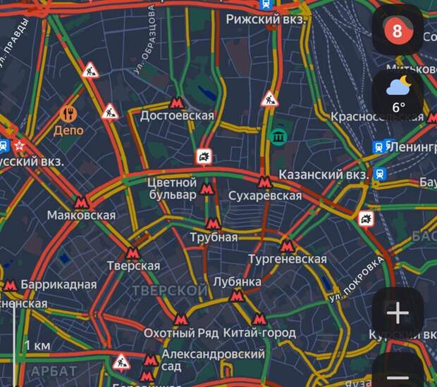 Судя по онлайн-картам, самые серьезные пробки наблюдаются в центре города.