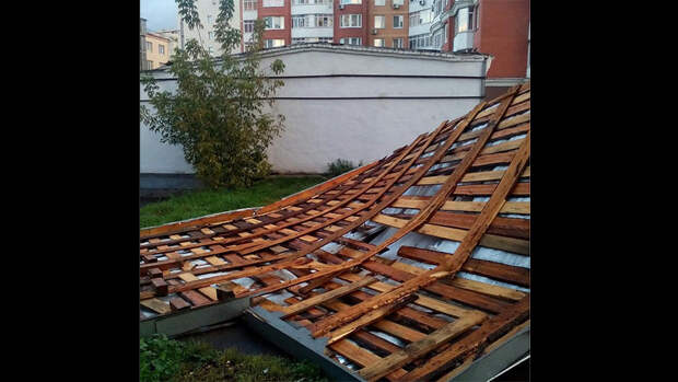 Ночью на место прибыли спасатели. Они расчищали территорию —накрывали повреждённый кусок крыши рубероидом на случай дождя.