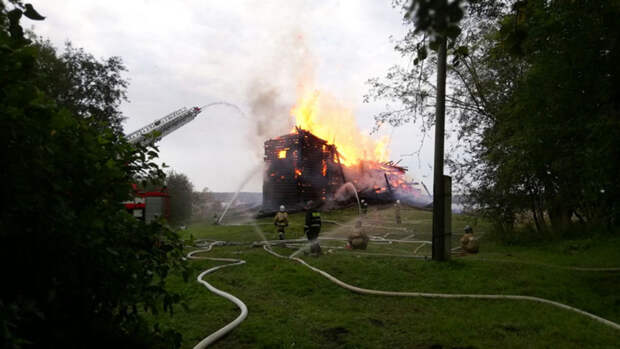 Деревянная церковь высотой 42 метра была одним из самых высоких культовых сооружений русского Севера и располагалась на берегу Кондопожской губы Онежского озера. Здание было построено в 1774 году и оставалось единственным сооружением из всего комплекса храмов, находившихся в Кондопоге.Пожар в церкви начался утром в пятницу, в 9:33 утра. Как сообщает карельский портал "Петрозаводск говорит", спасатели прибыли на место происшествия через восемь минут. В тушении пожара были заняты 11 человек и четыре пожарные машины. К сожалению, спасти церковь им не удалось: к 11:50 открытый огонь ликвидировали, однако церковь к этому моменту сгорела практически дотла.