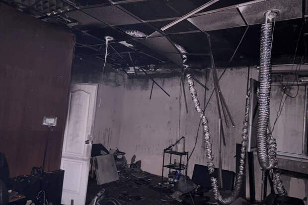 По словам очевидцев, после взрыва в переговорной полилась вода и распространился "ужасный запах".Возгорание произошло в одном из помещений офисного здания,, где располагался тату-салон. Один человек пострадал. Его госпитализировали.
