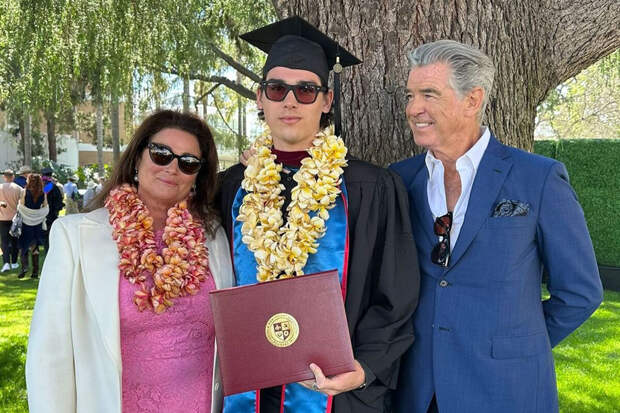 Голливудский актер Пирс Броснан с женой пришел к 22-летнему сыну на выпускной. Он сообщил об этом событии в соцсетях и поделился семейным фото.