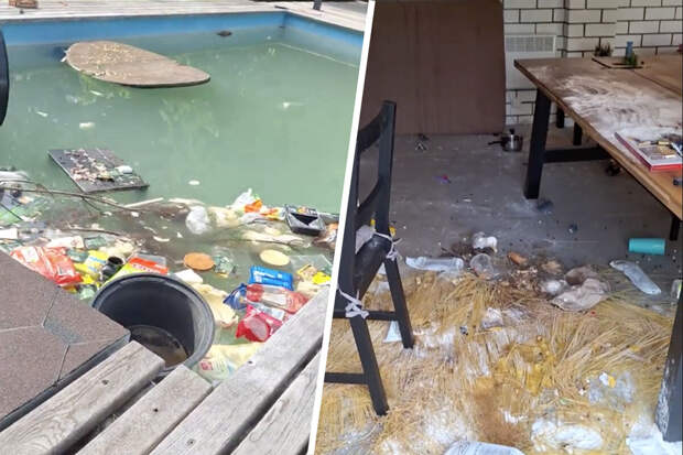 Они проникли в дом, ничего не украли, но разгромили жилище: в комнатах сломана мебель и бытовая техника, разбиты окна, захламлен бассейн. Стены и фасады хулиганы изрисовали неприличными словами и рисунками, разорвали и залили краской постельное белье.