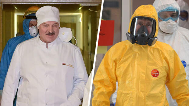 В марте прошлого года президент Владимир Путин при посещении больницы в Коммунарке облачился в герметичный противочумной костюм желтого цвета с респиратором повышенной защиты. Его белорусский коллега Александр Лукашенко при посещении "красной зоны" горбольницы Минска в ноябре не стал надевать противоэпидемический костюм и ограничился медицинскими халатом, шапочкой и маской.