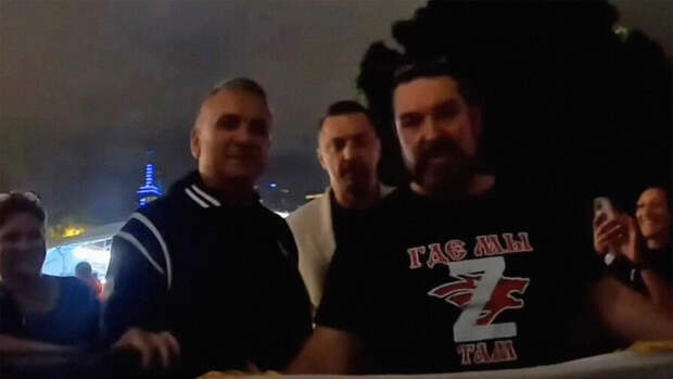 В руках мужчины также был флаг России с изображением Путина.Отмечается, что покидая болельщиков, Срджан Джокович сказал "Да здравствуют русские".