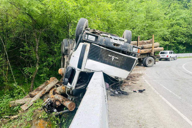 В Северной Осетии лесовоз перевернулся и упал на отбойник трассы "Чикола - Мацута - Коми-Арт", сообщается в Telegram-канале республиканской ГИБДД.