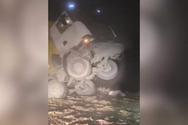 Отмечается, что во время выгрузки грунта грузовик неожиданно начал скользить, что мешало работе. В результате к нему решили прикрепить экскаватор с помощью веревки, которая впоследствии оборвалась.