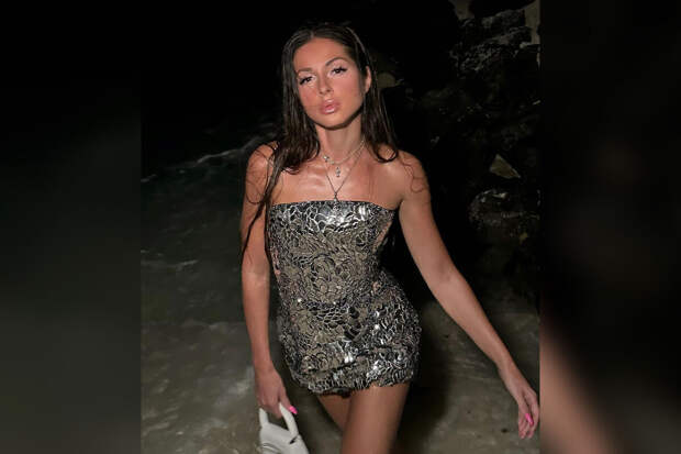 Пере камерой 33-летняя Нюша предстала в ультракоротком "металлическом" платье, которое привлекло внимание к ее фигуре. Певица добавила к нему белую сумку Diesel и несколько цепочек.