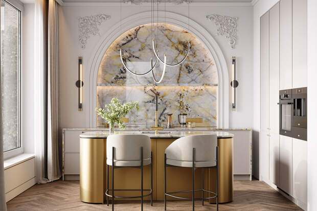 "Речь идет о шпоне, натуральном и даже полудрагоценном камне, а также о многослойных поверхностях, включающих как природные материалы и элементы, так и различного рода смолы, создающие неповторимый визуальный эффект. Все эти материалы не только обладают инновационными качественными характеристиками, но и позволяют оформить пространство, которое по-настоящему впечатляет", — отметила эксперт.