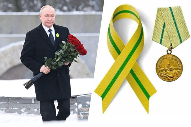 27 января, в 82-ю годовщину снятия блокады Ленинграда, Путин возложил цветы к монументу "Рубежный камень" на Невском пятачке. У монумента Путина встретили полпред президента в Северо-Западном федеральном округе Игорь Руденя и губернатор Ленинградской области Александр Дрозденко. У них были такие же ленточки.