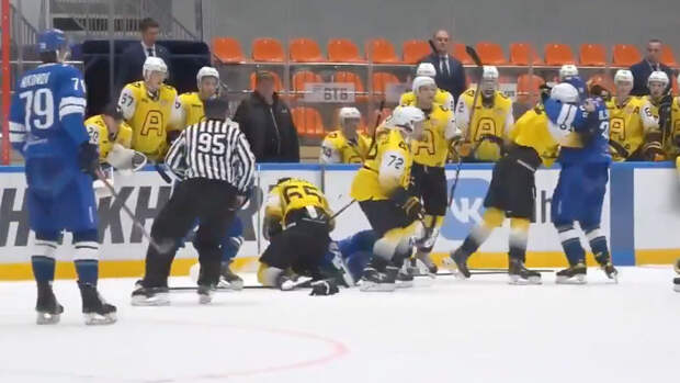 Матч регулярного чемпионата Молодежной хоккейной лиги между (МХЛ) "Динамо" и "Алмазом" завершился массовой дракой. Об этом сообщает официальный в Twitter-аккаунт Лиги.