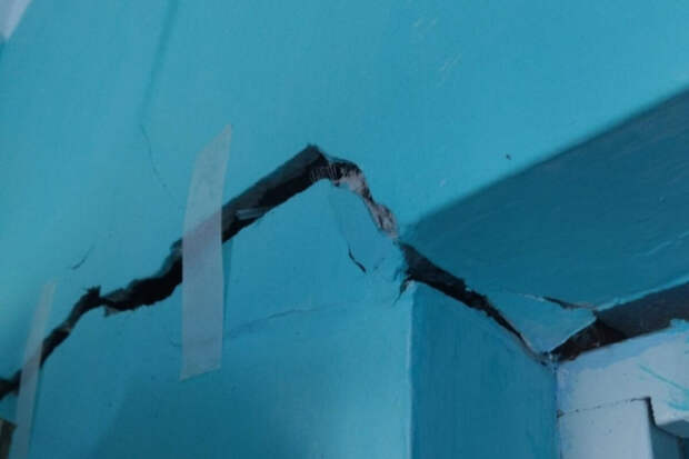 Жительница села приложила к сообщению фотографии, на которых видны разломы в стенах. Женщина отметила, что работники учреждения не выносят вопрос на публичное обсуждение, боясь увольнений, и обратилась к Хабирову с просьбой провести экспертизу здания.