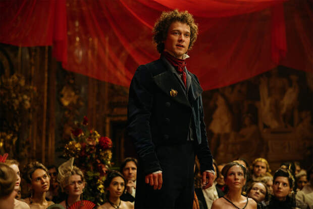 Следом все сыпется по принципу домино: кринжовый хип-хоп и не отстающие от него арии снабжены скучноватыми аранжировками, в которых быстро опознается супермаркетный почерк композитора Райана Оттера (в свое время он сочинил музыку для киносериала "Гоголь", еще одного жанрового проекта про одного из великих русских писателей, где в области финальных титров содержится смешное камео Михаила Юрьевича Лермонтова). В конечном счете страдает сердце мюзикла — музыкально-танцевальные номера, среди которых попадаются вещи яркие (вроде охранительского гимна Александра Бенкендорфа в исполнении Сергея Гилева), но все-таки не способные исправить скверное впечатление от однообразности всего этого сегмента картины: герои топают ножками, хлопают ручками и в целом всячески обозначают ритм — и на этом, в общем, все.