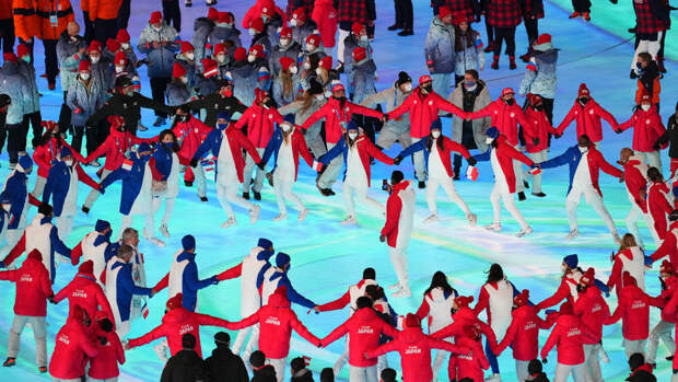 От сборной России в закрытии приняли участие 60 спортсменов, а флаг Олимпийского комитета РФ нес выигравший три золотые награды в Пекине лыжник Александр Большунов.