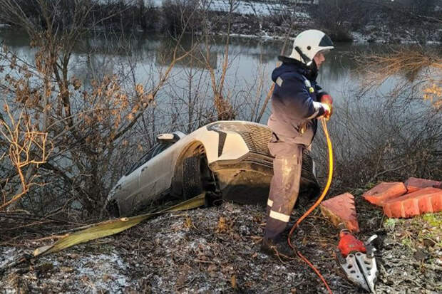 На кадрах с места происшествия видно, что автомобиль упал в глубокий овраг, его пришлось вытягивать тросом.