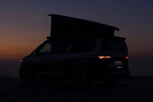 Автомобиль получит подъемную крышу и пятиспицевые колесные диски. Машина будет окрашена в серебристый и красный цвета. Концептуальный Volkswagen T7 California получит гибридную силовую установку.