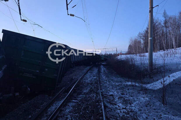 В Сети появились фото с места схода вагонов грузового поезда в Амурской области. Кадры выложил Telegram-канал Skaner 28.