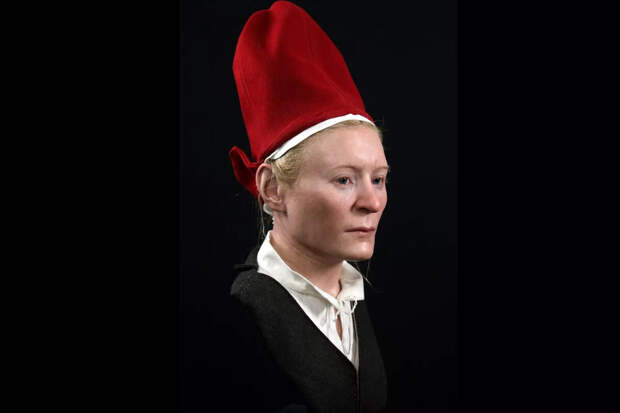Анной Сильверулв, эксперт по тканям из музея корабля "Васа" одела реконструкцию череп в темно-серый жакет и ярко-красную шляпу, которые были найдены рядом с ее останками.
