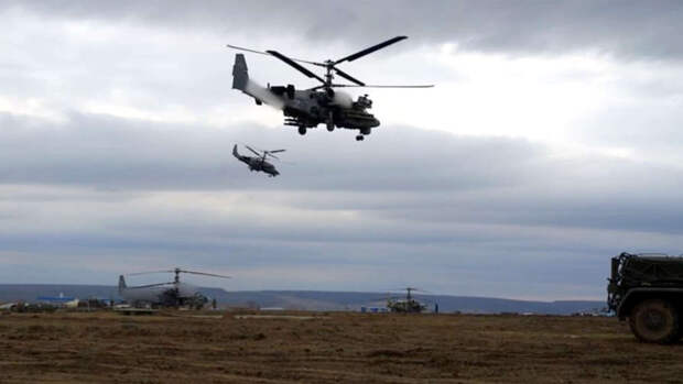 Ранее МО показало отработку боевых задач экипажами Ка-52 и Ми-28.
