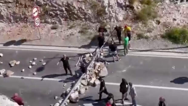 Протестующие собрались на въезде в город Цетине, они также засыпали магистраль камнями.