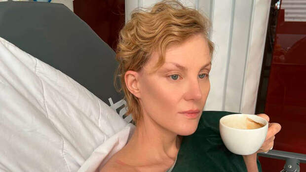 На кадре из палаты она позирует в постели с чашкой кофе. "Сегодня. В окне - солнце", - подписала кадр она.