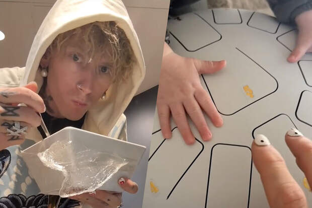 Machine Gun Kelly заснял, как они с 7-месячной дочерью играют на барабане. Рэпер не стал показывать лицо девочки, ограничившись только кадрами с ее руками. Сага была одета в темно-серый комбинезон с принтом.