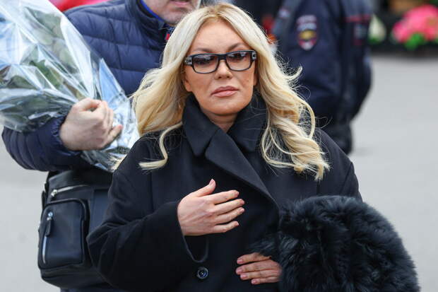 Артистка появилась на публике через несколько недель после того, как несколько ее концертов в России были отменены. Повалий прошла в зал прощания вместе с другими звездами.