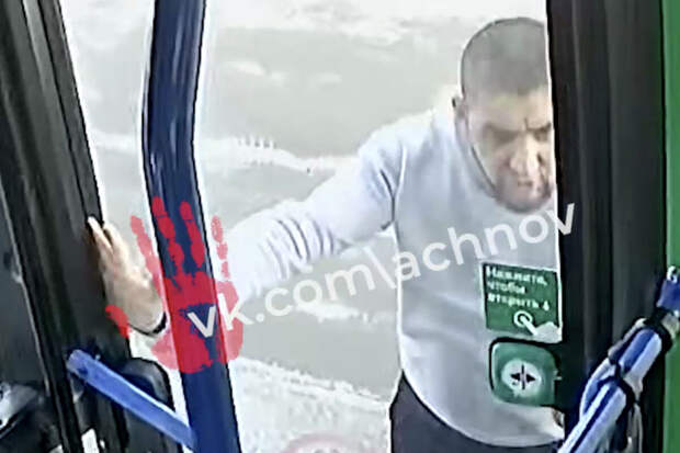 На записи с видеорегистратора автобуса видно, как пассажир маршрутки что-то кричит злоумышленнику, после чего последний возвращается в транспорт.