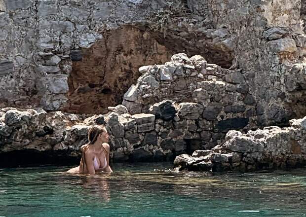 27-летняя Елизавета Пескова была запечатлена в розовом крошечном бикини и солнцезащитных очках. Дочь пресс-секретаря президента России позировала с мокрыми распущенными волосами в водоеме на фоне скалы.
