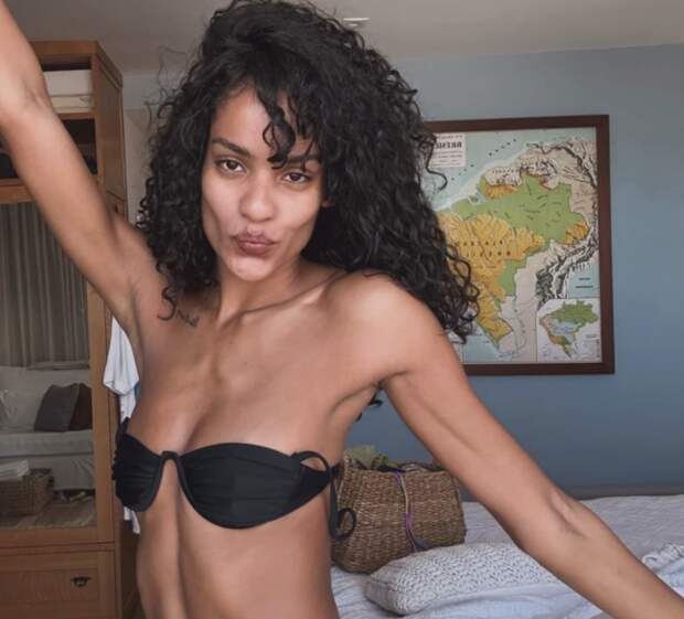 29-летняя Нара Баптиста позировала перед камерой в черном бикини на фоне спальни. Модель была запечатлена с распущенными волосами и без косметики.
