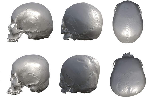 Чтобы разобраться в этом, Норико Сегучи из Университета Кюсю и его коллеги решили проанализировать черепа хирота и сравнить их с останками других древних жителей японских островов. Для удобства и для сохранности музейных образцов кости отсканировали и создали их виртуальную 3D-копию с погрешностью менее 0,05 мм. Затем с помощью геометрических методов авторы убедились, что наблюдаемое уплощение каждого черепа действительно велико и выходит за рамки биологической нормы. Кроме того, пристальный анализ выявил в костях бороздки, проходящие вдоль сагиттального и ламбдовидного швов.