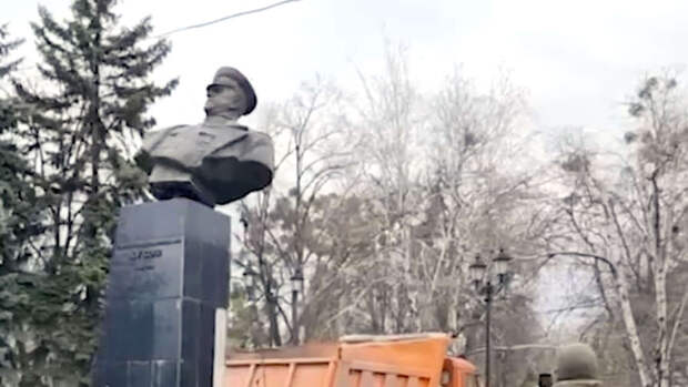 Ранее в сети распространился ролик, на котором неизвестные демонтируют бюст советского маршала. Инцидент произошел 17 апреля.