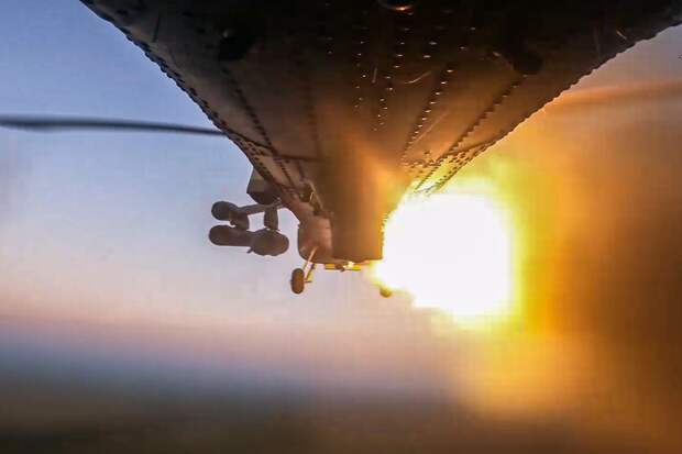 Российский армейский вертолет Ми-28НМ нанес ракетный удар по живой силе и бронетехнике украинских войск в приграничном районе Курской области. Об этом сообщает ТАСС со ссылкой на Минобороны РФ.