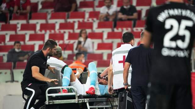 На 49-й минуте матча, который проходит в Москве на "Открытие Арене", игроки столкнулись головами в борьбе за верховой мяч. После падения Миладинович не мог подняться с газона.