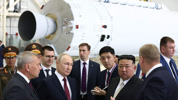 Лидеры познакомились с процессом сборки новой ракеты-носителя "Ангара" и узнали характеристики ракеты-носителя "Союз-2". По данным "Интерфакса", северокорейский лидер задавал много вопросов: его интересовало топливо для ракеты, принципы ее движения, а также куда падают ее отработавшие ступени.