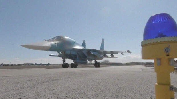 На видео можно заметить, как самолеты взлетают с взлетно-посадочной полосы, затем видно поражение грузовиков украинских войск.
