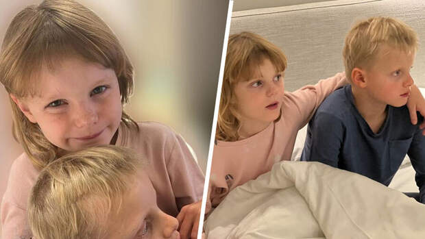Княгиня Монако Шарлен выложила в личном блоге серию фотографий детей от князя Альбера II. На опубликованных снимках 7-летние принц Жак и принцесса Габриэлла запечатлены в пижамах на кровати.