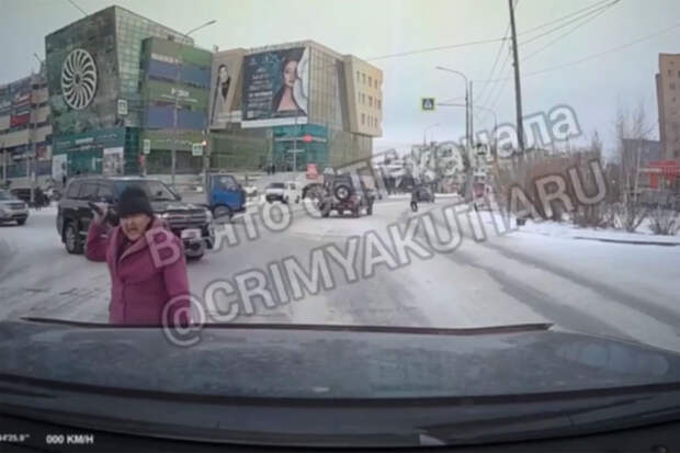 В Якутске агрессивная пенсионерка ударила тростью капот автомобиля и попала на видео. Запись с видеорегистратора атакованной машины опубликовали в Telegram-канале "КРИМЯКУТИЯ".