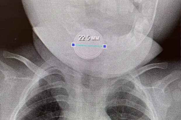 В приемное отделение больницы села Казанское был доставлен десятиместный младенец, ребенок с трудом дышал, сильно кашлял и вел себя беспокойно. В ходе обследования медики обнаружили в желудке маленького пациента инородное тело — круглую батарейку.