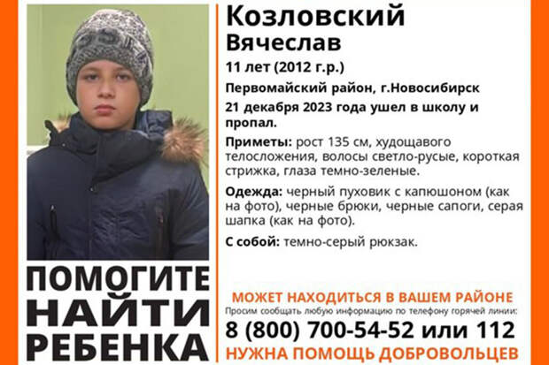 По информации поискового отряда, инцидент произошел 21 декабря. Ребенок ушел из дома в школу и пропал.