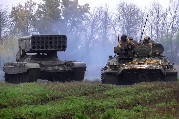 Российский расчет тяжелой огнеметной системы "Солнцепек" поразил скопление живой силы украинской армии под Курдюмовкой в Артемовском районе Донецкой народной республики. Об этом сообщает РИА Новости со ссылкой на руководителя пресс-центра группировки "Юг" Вадима Астафьева.