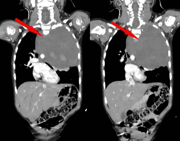 Родители показали дочь врачам, когда заметили у нее небольшую припухлость в области шеи. Специалисты по месту жительства выявили огромное новообразование размером со страусиное яйцо, которое сдавливало сердце и легкое.