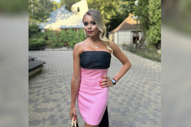 Спортсменка предстала перед подписчиками в черно-розовом платье с обнаженными плечами.