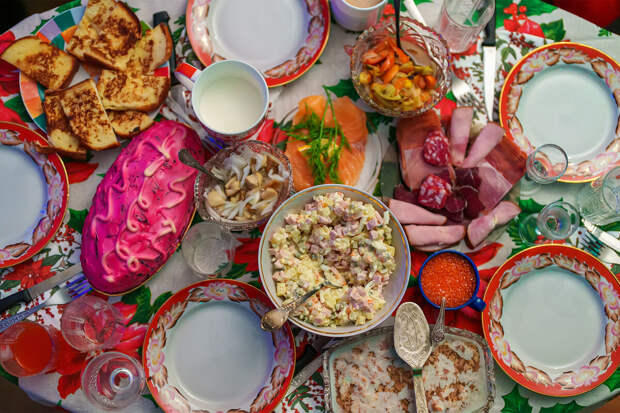 Из блюд, которые не являются традиционно новогодними, но все же ассоциируются с этим праздником, опрошенные россияне выделили рыбу и морепродукты (8%), шашлык, запеченное мясо и мясо на мангале (7%), суши и роллы (6%), пельмени или манты (6%) и утку (5%). Есть и те, кто предпочитает видеть на новогоднем столе такие блюда, как, например, плов, окрошку, борщ, кашу, шаверму, мозги бобра или почки заячьи верченые.