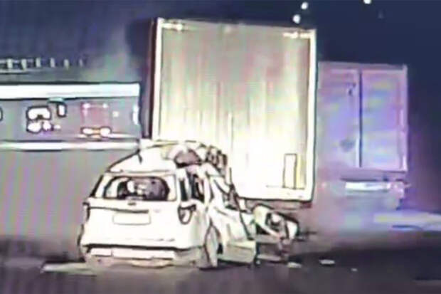 По словам очевидцев, водителю удалось выжить, сейчас он в тяжелом состоянии", – говорится в публикации.Видеорегистратор автомобиля, водитель которого стал очевидцем произошедшего, запечатлел инцидент. На кадрах видно, как автомобиль на скорости врезается в грузовик, от удара автомобильные детали разлетаются по дороге. На записи также заметно, что кроссовер получил серьезные повреждения: у транспорта смят кузов, разбит капот, бампер, стекла.